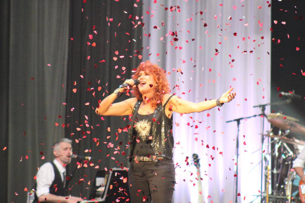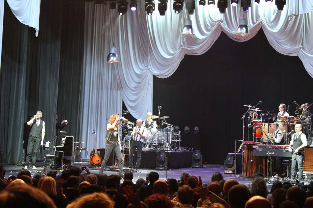 Il concerto di Fiorella Mannoia nei teatri è un viaggio nella sua vita e comincia con due hit: la canzone di Celentano “Un bimbo sul leone” e la sua intramontabile “Caffè Nero Bollente“. Lei si muove, balla, elegante e sinuosa come una gatta e intanto si cambia d’abito per rendere ancora di più l’effetto di evoluzione della sua carriera. “Vi ricordate quando avevamo quelle spalline giganti che finivano da tutte le parti? E il vestito rosso che mi vedete addosso? È l’originale di tanti anni fa e mi va ancora…tiè!“.